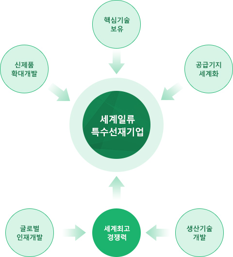 열처리기술(INDUCTION HEATING)을 바탕으로 건축을 주축으로 한 공업부문의 최고 기술과 품질, 경쟁력을 갖춘 세계일류특수선재 기업실현